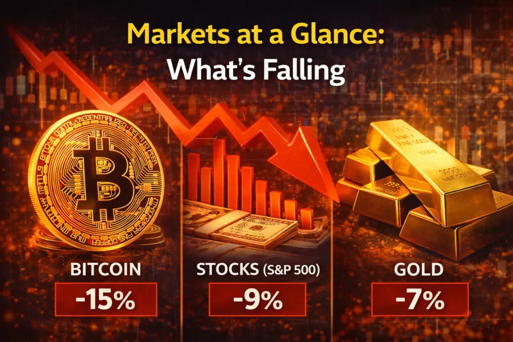 The selling pressure is broad, affecting stocks, crypto, and even precious metals.